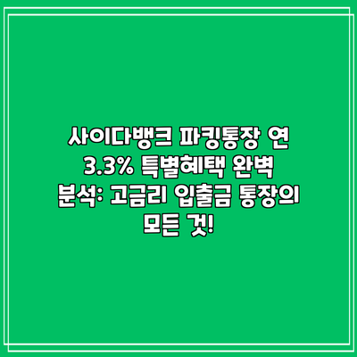 사이다뱅크 파킹통장 연 3.3% 특별혜택 완벽 분석: 고금리 입출금 통장의 모든 것!