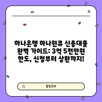 하나은행 하나원큐 신용대출 완벽 가이드: 3억 5천만원 한도, 신청부터 상환까지!