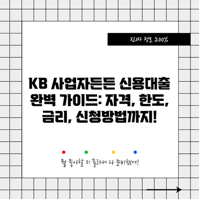 KB 사업자든든 신용대출 완벽 가이드: 자격, 한도, 금리, 신청방법까지!