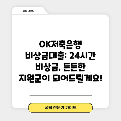 OK저축은행 비상금대출: 24시간 비상금, 든든한 지원군이 되어드릴게요!