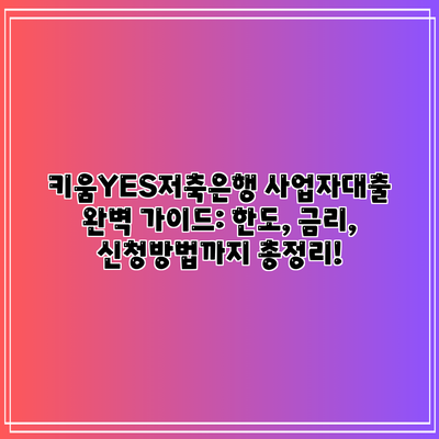 키움YES저축은행 사업자대출 완벽 가이드: 한도, 금리, 신청방법까지 총정리!