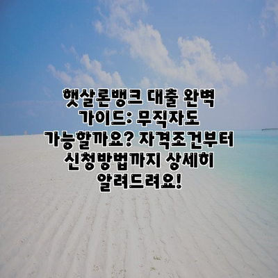 햇살론뱅크 대출 완벽 가이드: 무직자도 가능할까요? 자격조건부터 신청방법까지 상세히 알려드려요!