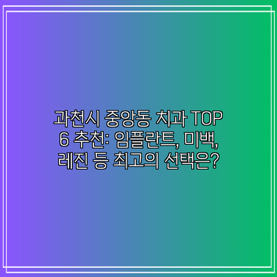 과천시 중앙동 치과 TOP 6 추천: 임플란트, 미백, 레진 등 최고의 선택은?